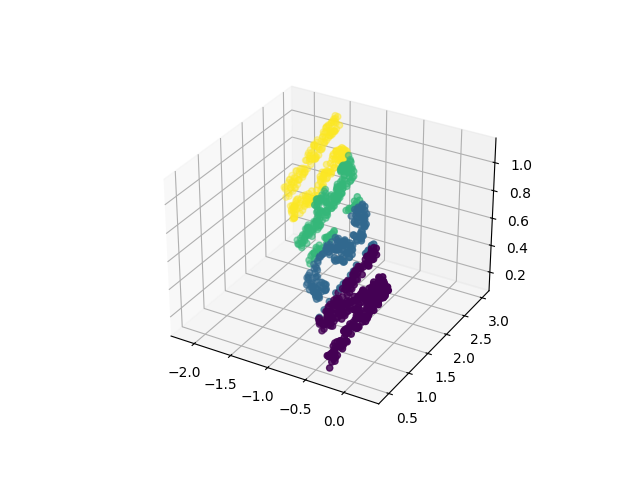 このような3次元データを元の2次元に復元することが、多様体学習推定器の本質的な目的です。高次元の埋め込みデータを与えると、データ内の特定の関係を保持する低次元のデータ表現を求めます。MDSの場合、保存される量は全てのポイント間の距離です。
