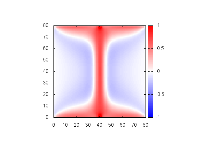 Z方向の磁場の強さの図。絶対値が15ほどまで強くなっている様子がわかる。